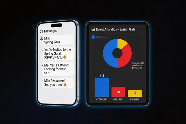 SMS RSVP tools deliver invitations instantly and capture replies, giving organizers a 98% open rate and 70‑90% response rate versus 20‑30% for email and 30‑50% for paper cards. Two‑way communication cuts data entry, lowers no‑show rates by up to 15 % and reduces staff labor by 30 % or more. Text messages work on phones, reaching audiences with internet access and complying with TCPA, CCPA and GDPR out‑of‑the‑box. Test a few platforms with a pilot batch, compare delivery analytics and cost per message, then scale one that fits your budget and workflow. Evant’s all‑in‑one suite combines SMS RSVP, reminders, CRM sync and dashboards, offering a turnkey solution for nonprofits and educational events.